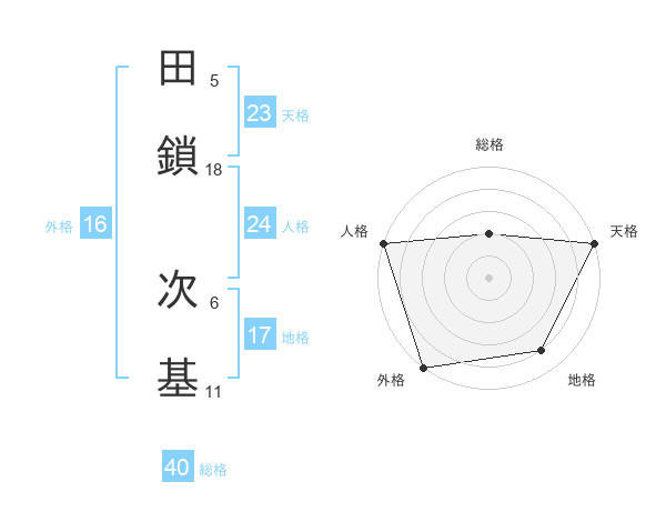 田鎖 次基さんの天格は23画の5点!