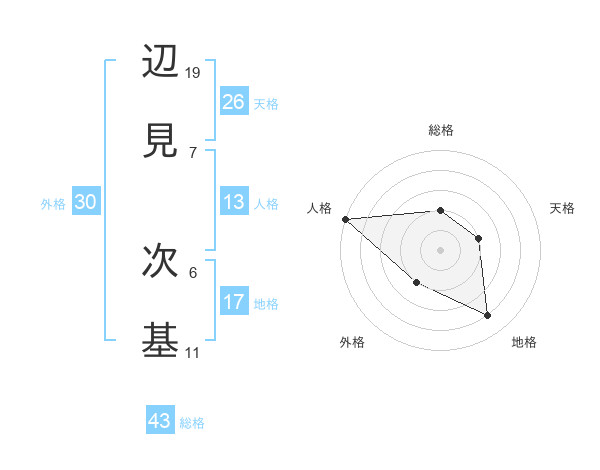 辺見 次基さんの地格は17画の4点!