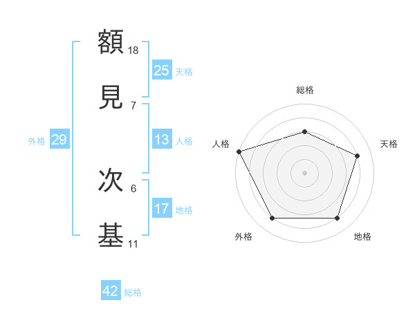 額見 次基さんの天格は25画の4点!