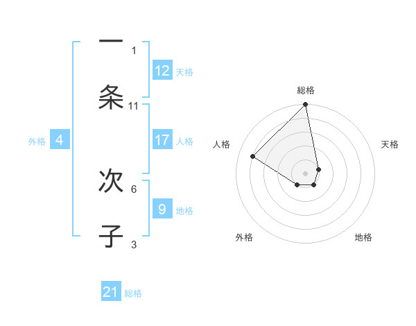 一条 次子さんの総格は21画の5点!