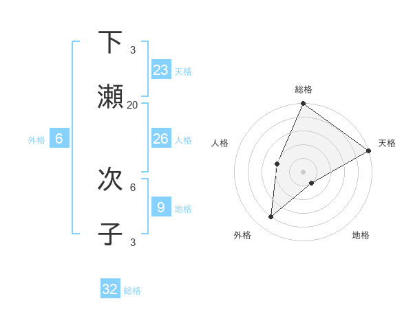 下瀬 次子さんを姓名の画数から五運を鑑定