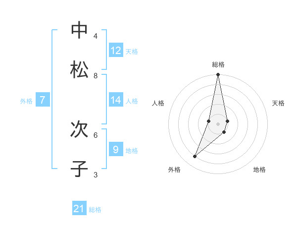 中松 次子さんの総格は21画の5点!