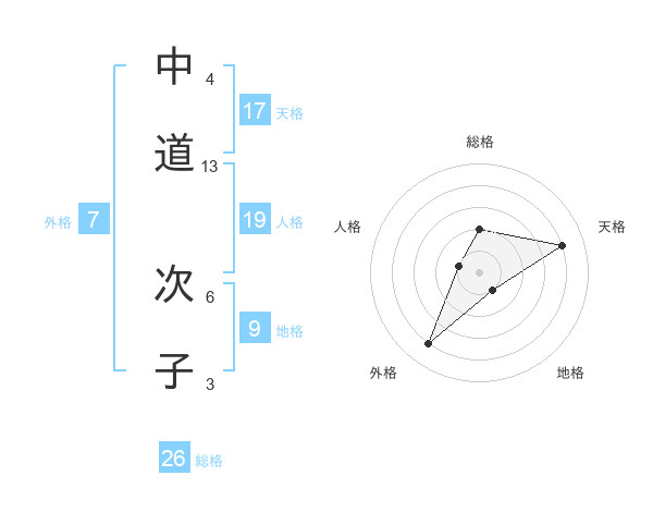中道 次子さんの天格は17画の4点!