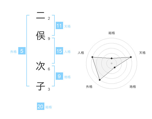二俣 次子さんの総格は20画の1点!