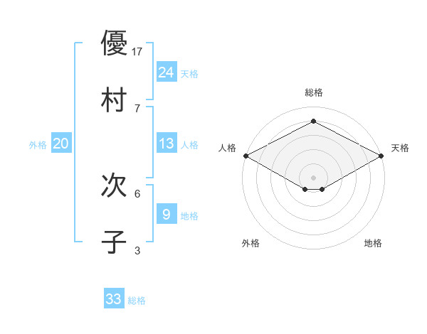 優村 次子さんの天格は24画の5点!