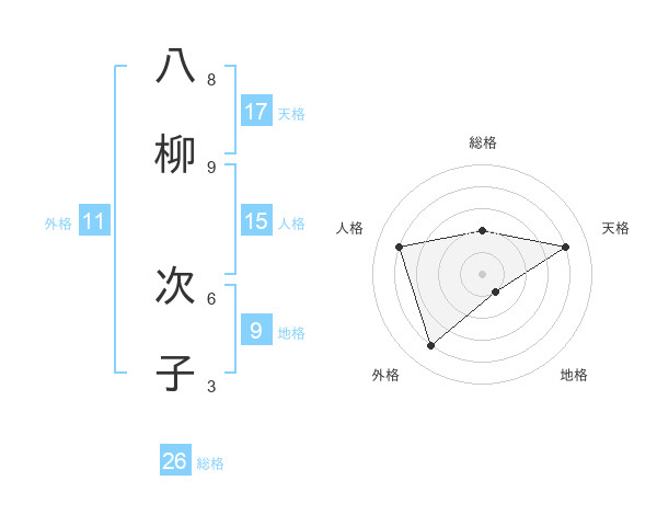八柳 次子さんの天格は17画の4点!