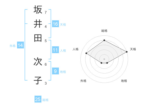 坂井田 次子さんを姓名の画数から五運を鑑定