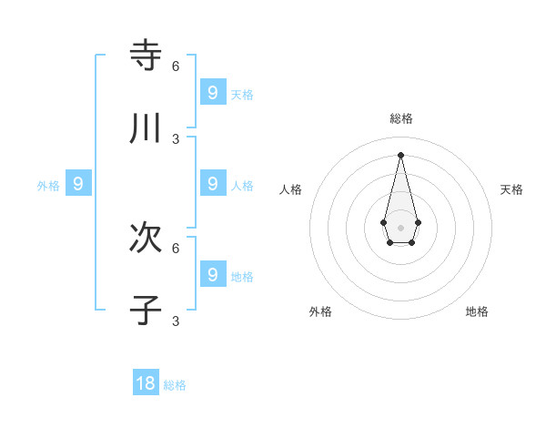 寺川 次子さんの総格は18画の4点!