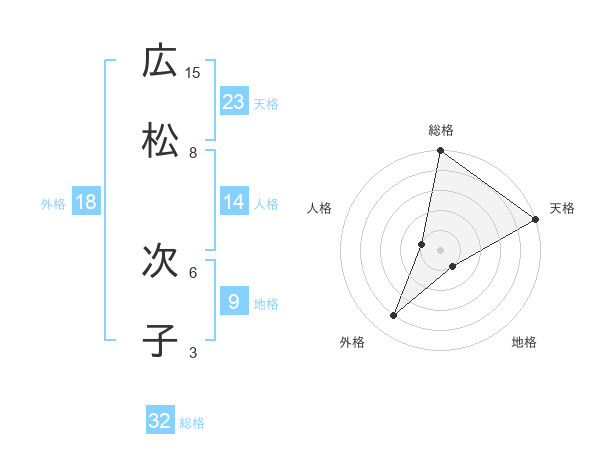 広松 次子さんの総格は32画の5点!