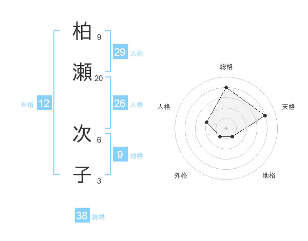 柏瀬 次子さんの総格は38画の4点!