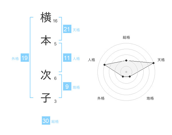 横本 次子さんの総格は30画の2点!