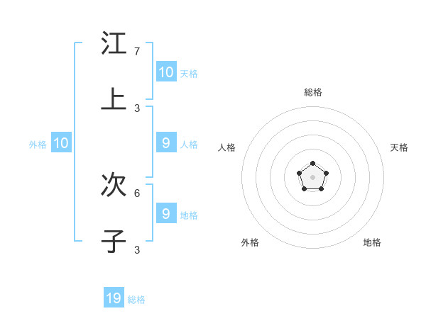 江上 次子さんを姓名の画数から五運を鑑定