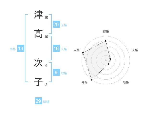 津髙 次子さんの総格は29画の4点!