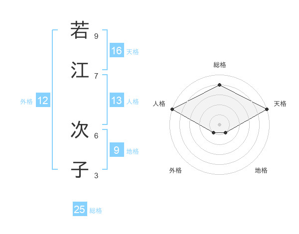 若江 次子さんの天格は16画の5点!