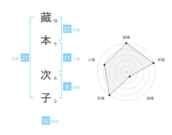 藏本 次子さんの総格は32画の5点!