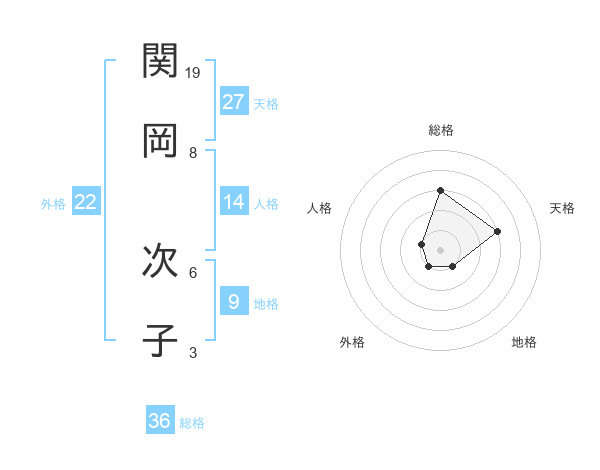 関岡 次子さんの天格は27画の3点!