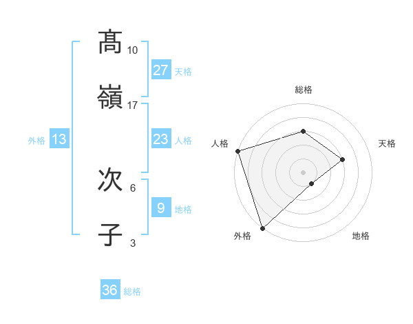 髙嶺 次子さんを姓名の画数から五運を鑑定