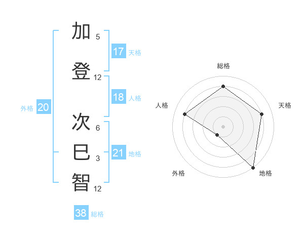 加登 次巳智さんを姓名の画数から五運を鑑定