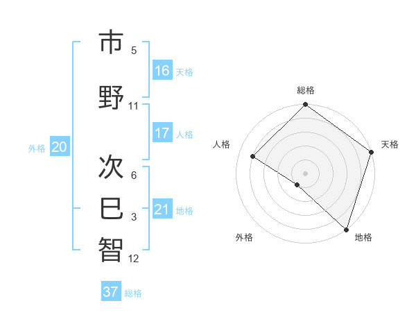 市野 次巳智さんを姓名の画数から五運を鑑定