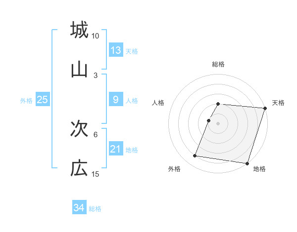 城山 次広さんの地格は21画の5点!