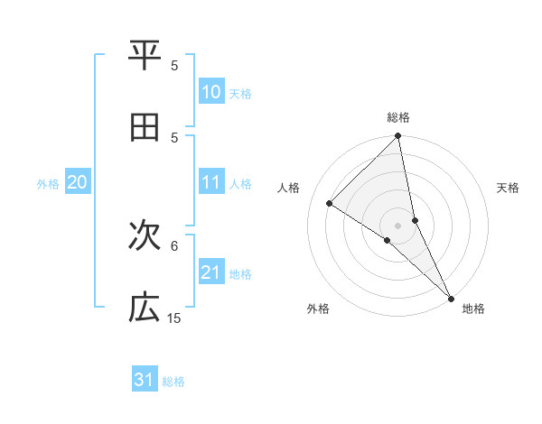 平田 次広さんの総格は31画の5点!