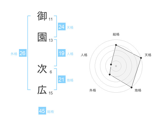 家系が持つ宿命的な運勢を表します。祖先から受け継いだ苗字ですので自分の力が及びません。家柄を象徴します。