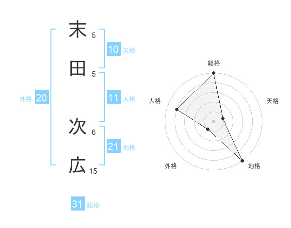 末田 次広さんの総格は31画の5点!
