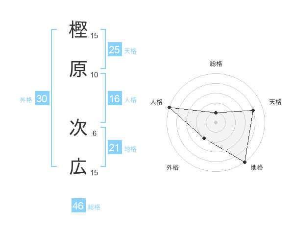 樫原 次広さんの地格は21画の5点!
