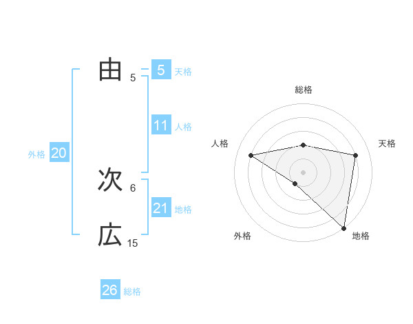 由 次広さんの地格は21画の5点!