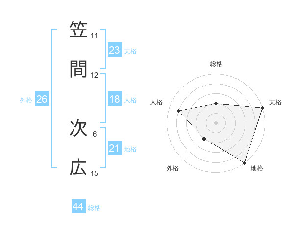 笠間 次広さんの天格は23画の5点!