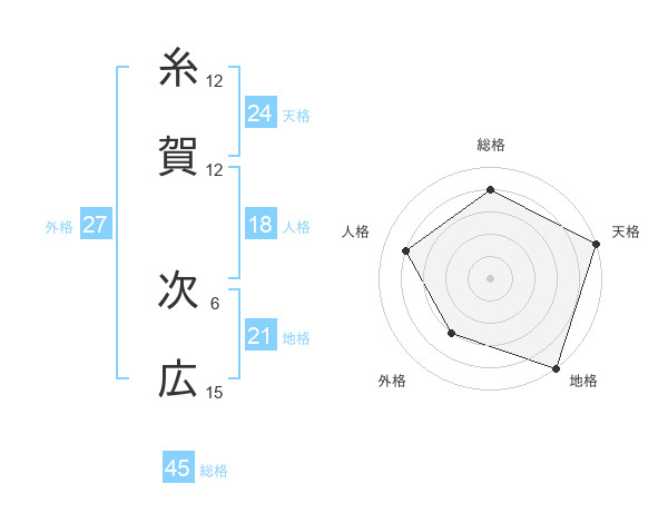 糸賀 次広さんの総格は45画の4点!