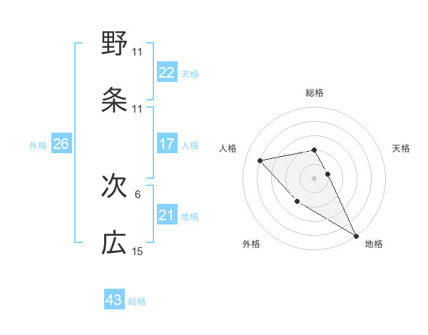 野条 次広さんの総格は43画の2点!