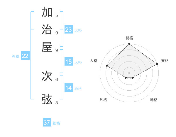 加治屋 次弦さんを姓名の画数から五運を鑑定