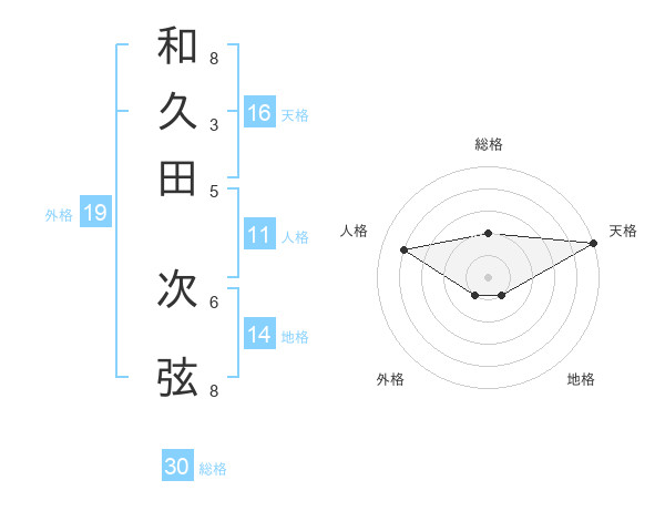 和久田 次弦さんを姓名の画数から五運を鑑定