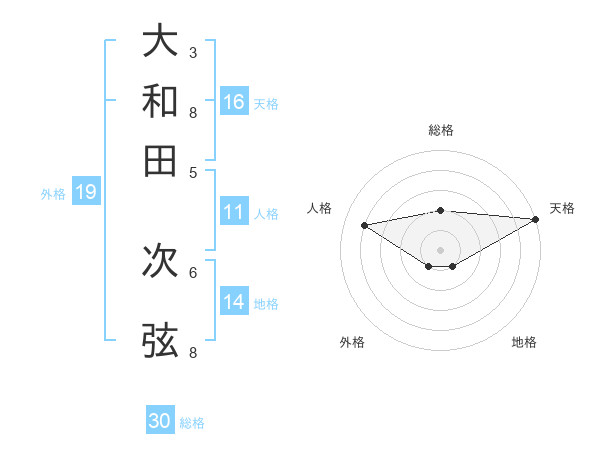 大和田 次弦さんを姓名の画数から五運を鑑定