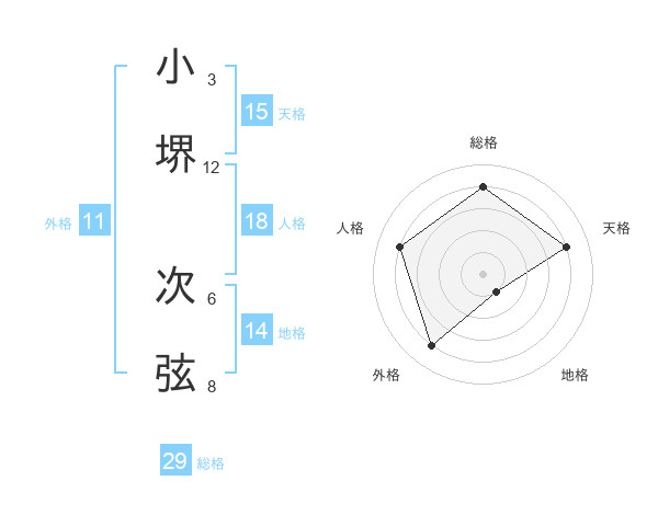 小堺 次弦さんの総格は29画の4点!