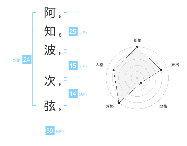 阿知波 次弦さんを姓名の画数から五運を鑑定