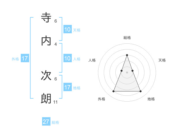寺内 次朗さんの総格は27画の3点!