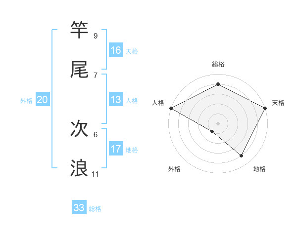 竿尾 次浪さんを姓名の画数から五運を鑑定