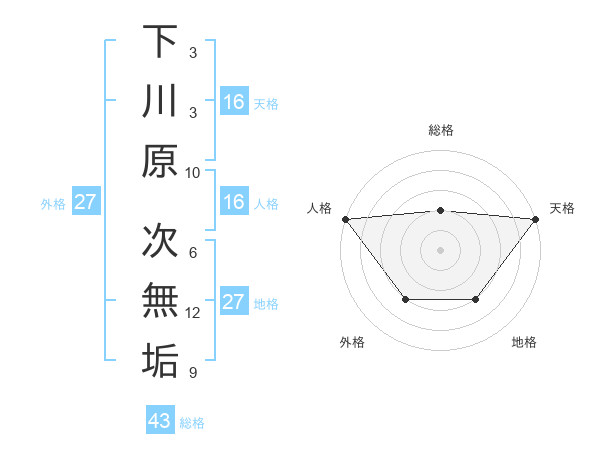 下川原 次無垢さんを姓名の画数から五運を鑑定