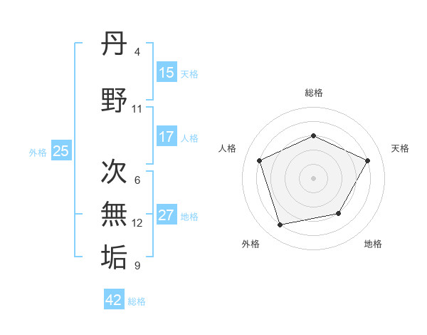 丹野 次無垢さんの天格は15画の4点!