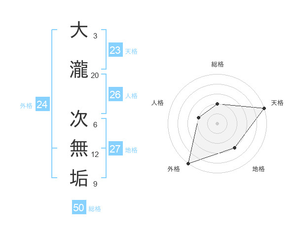 大瀧 次無垢さんを姓名の画数から五運を鑑定