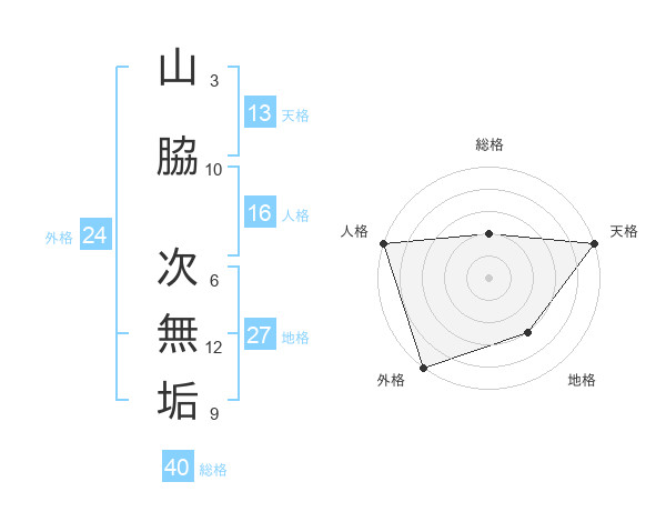 山脇 次無垢さんを姓名の画数から五運を鑑定