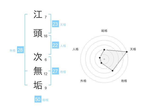 江頭 次無垢さんを姓名の画数から五運を鑑定