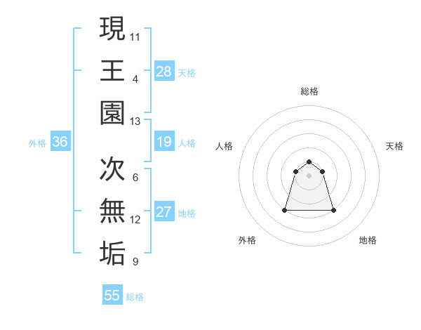 現王園 次無垢さんを姓名の画数から五運を鑑定