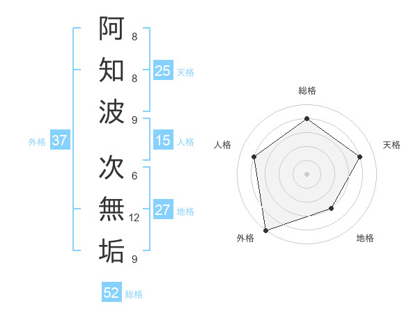 阿知波 次無垢さんを姓名の画数から五運を鑑定