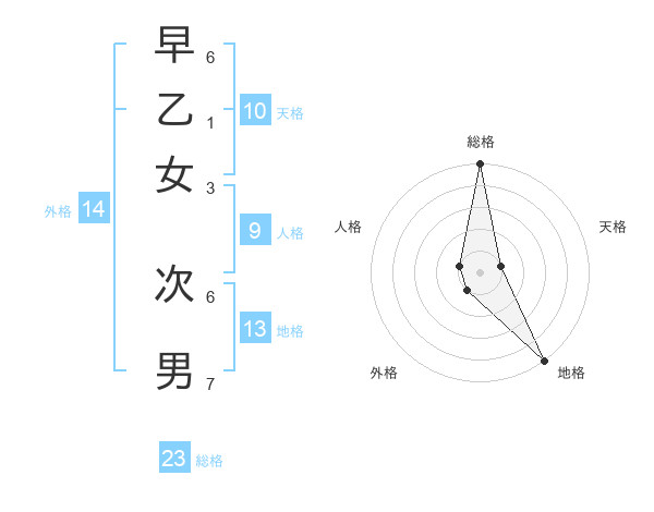 早乙女 次男さんを姓名の画数から五運を鑑定