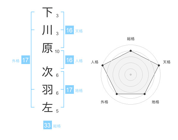 下川原 次羽左さんを姓名の画数から五運を鑑定