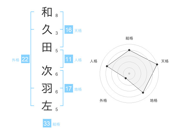 和久田 次羽左さんを姓名の画数から五運を鑑定