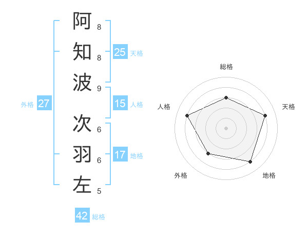 阿知波 次羽左さんを姓名の画数から五運を鑑定